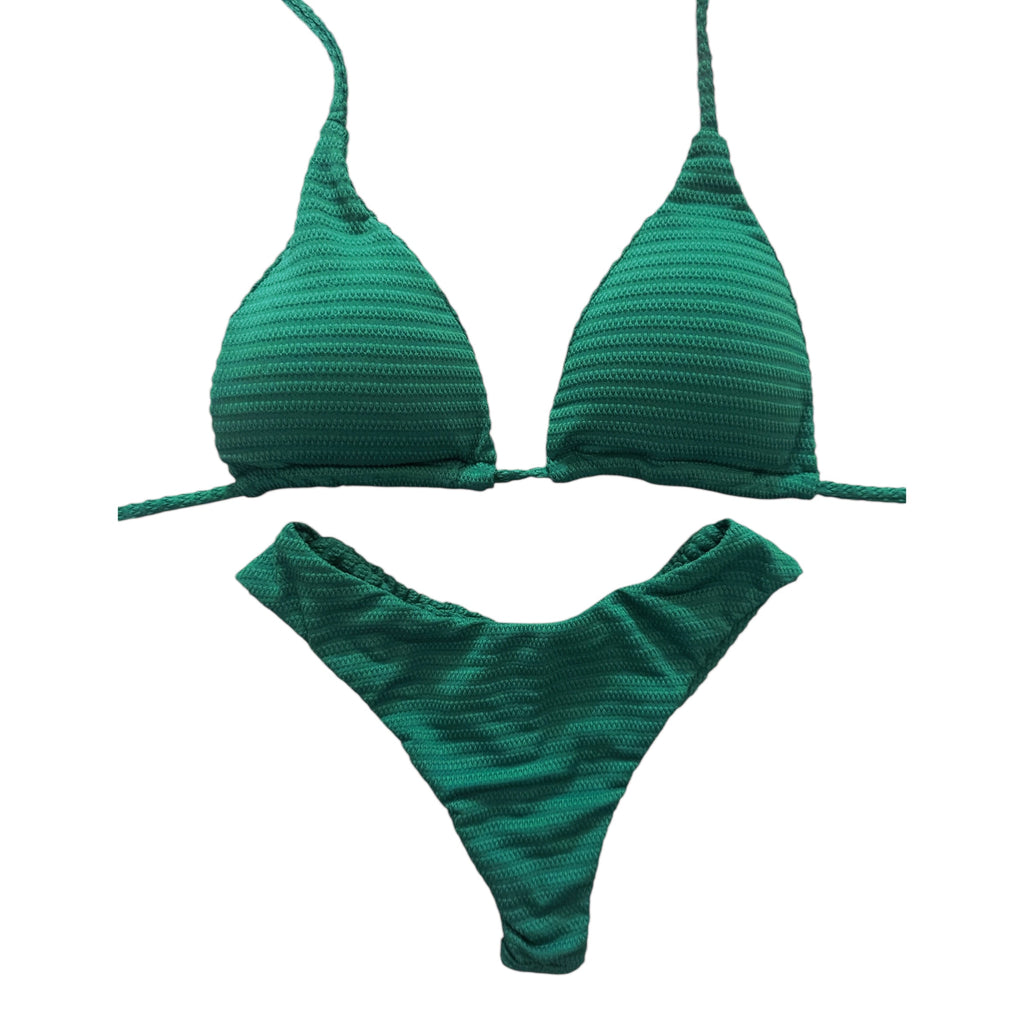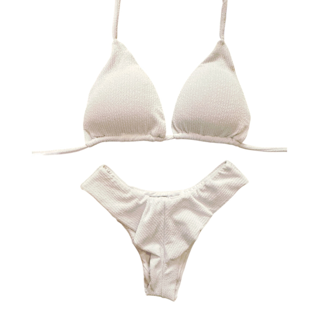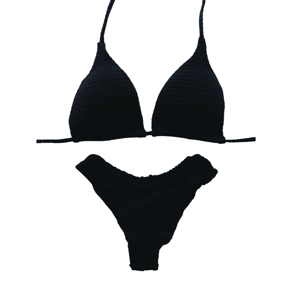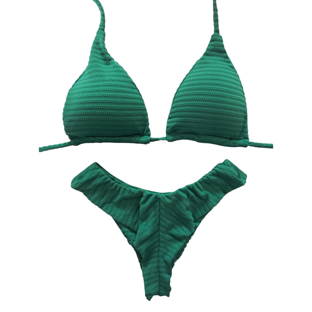Turn heads with this sleek bikini set, designed for both comfort and style. The top features thin, adjustable straps and removable padding for a customizable fit. Paired with tie-side bottoms that let you adjust to your perfect size. A must-have for your beachwear collection.