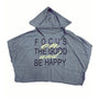Stay cozy and inspired with this lightweight hooded top featuring a relaxed fit and short sleeves. The front showcases a bold motivational print that reads “Focus on the good and be happy”, perfect for adding a positive vibe to your casual wardrobe. Ideal for layering or wearing on its own for a laid-back, feel-good look.