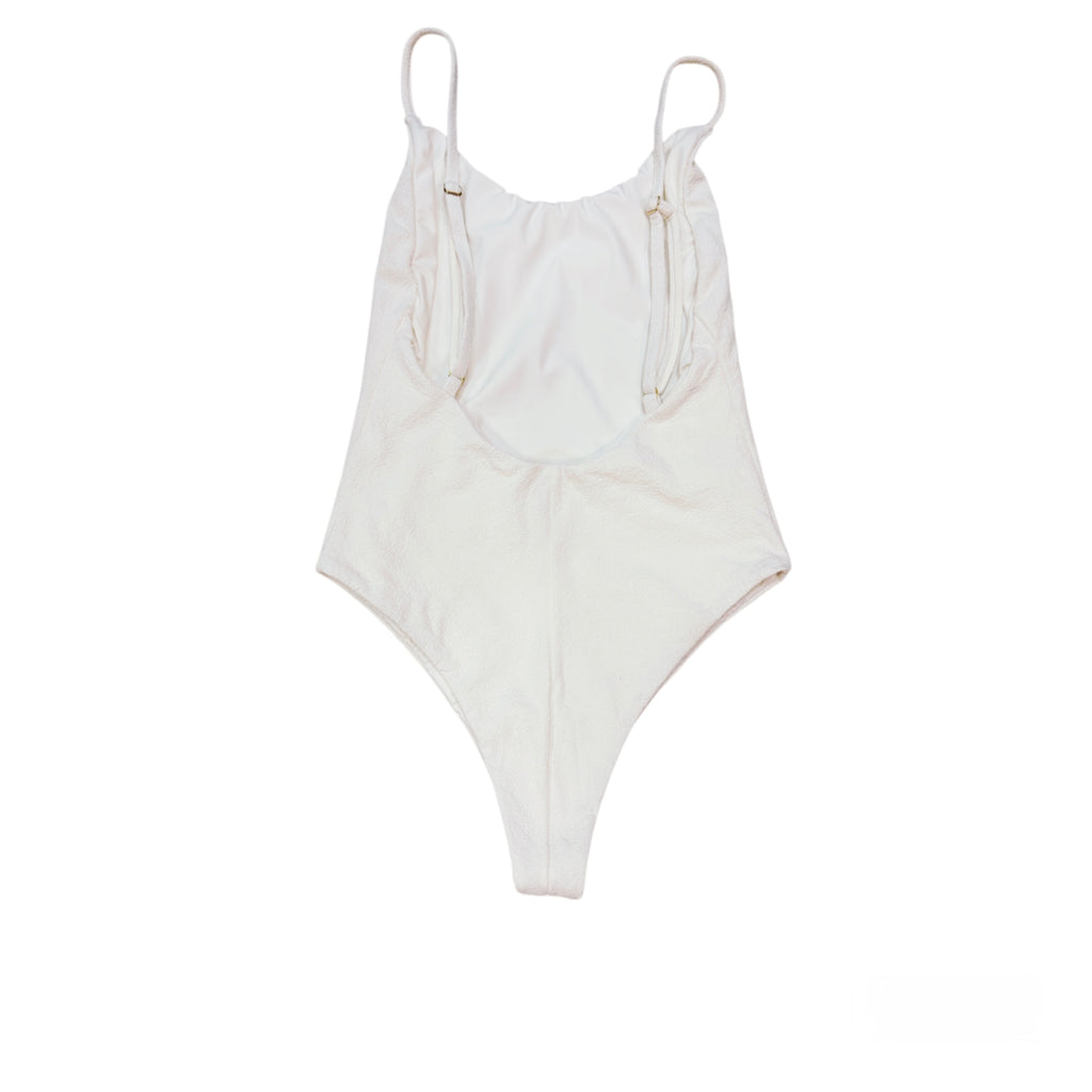 ✔️ Textured one-piece swimsuit – soft textured fabric with adjustable shoulder straps, a clean minimal front and a high-cut open back that elongates the silhouette.